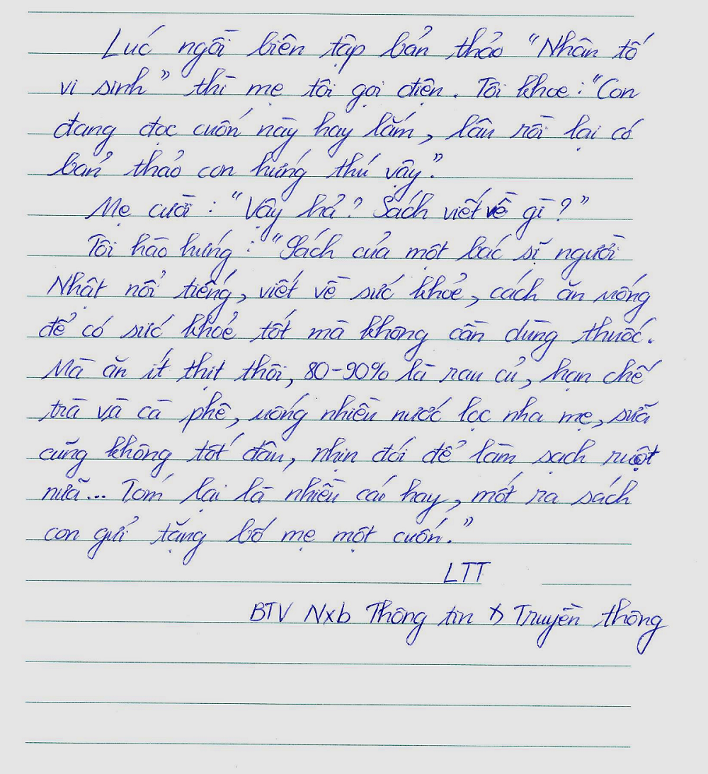 "Cuốn sách giúp cho hàng triệu người Việt Nam cải thiện được sức khỏe của chính mình ngay trong từng bữa ăn góp phần giảm gánh năng lên hệ thống y tế, xã hội"