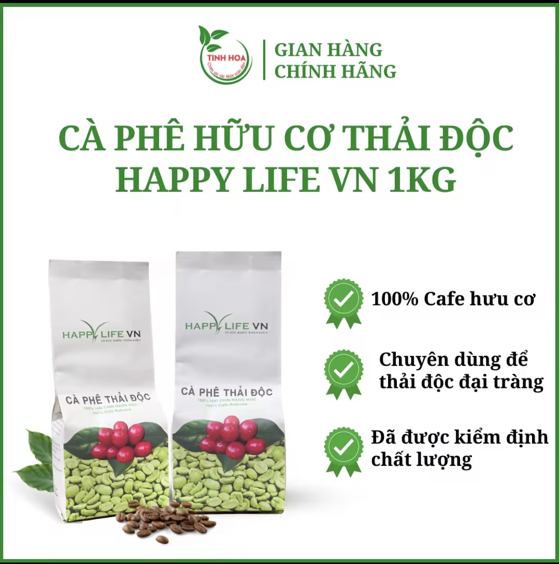 Cà phê hữu cơ thải độc đại tràng 2 túi 1kg Happy Life VN - TINHHOACARE